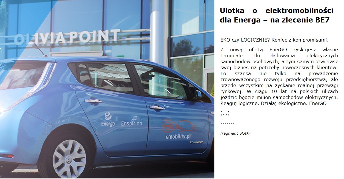 ENERGA - ulotka o elektromobilności, na zlecenie BE7