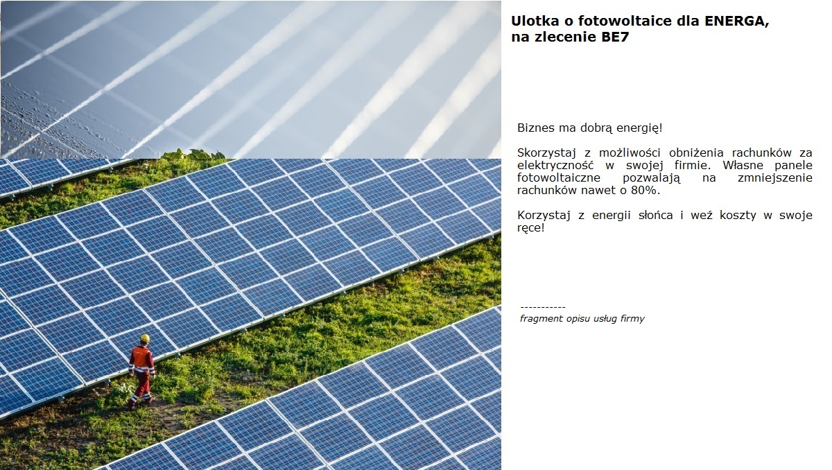 ENERGA - ulotka o fotowoltaice, na zlecenie BE7
